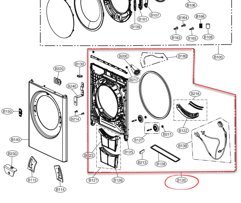 LG szárítógép első burkolati egység (tömítés, szűrő..)